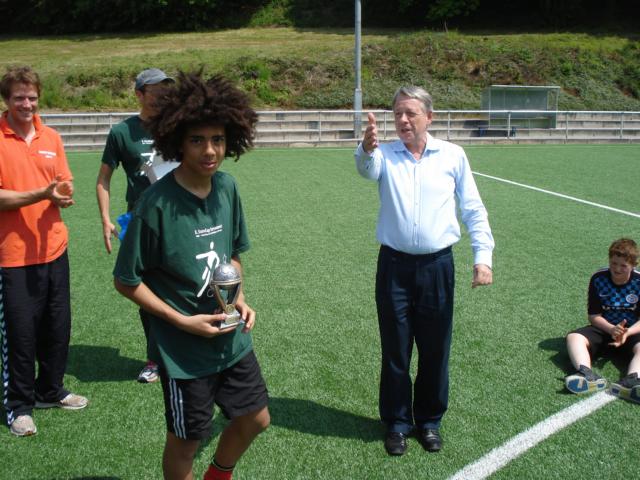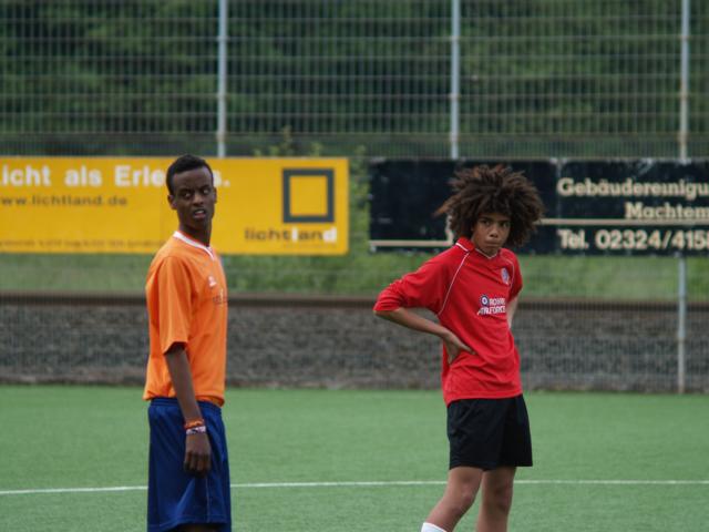 Trotz der großen körperlichen Unterschiede stehen hier nur U14-Spieler auf dem Kunstrasen. Die deutschen Fußballer gehen alle in die Klassen 6 oder 7, spielen auch an der Waldstraße größtenteils in der Schulmannschaft, mit der sie vor kurzem die Kreismeisterschaft gewannen. Betreuer des deutschen Teams und Organisatoren sind vier Lehrer an der Waldstraße: Herr Hermann, Herr Pelzer, Herr Jaunich und Herr Niehues. „Die Organisation des ganzen Turniers, wozu ja auch Unterkunft und Verpflegung zählen, ist sehr viel Arbeit. Doch wenn sich die Jungs beim Spielen in gemischten Teams unterhalten und kennenlernen – allein das ist den Aufwand wert“, berichtet Herr Niehues.
