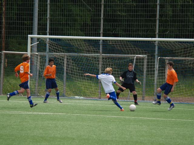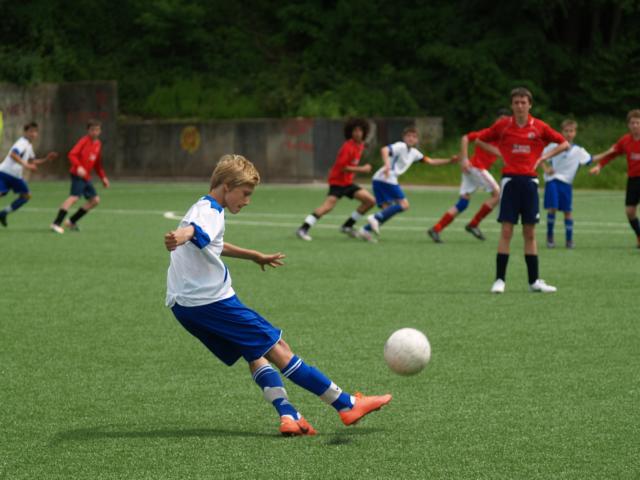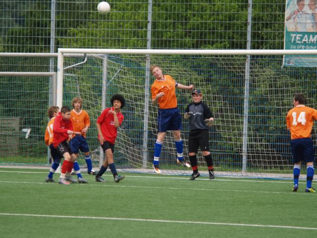Knapp endete dieses Spiel zwischen einem deutschen und einem englischen Fußballteam auch – allerdings nicht wie beim Champions League-Finale zwischen Bayern München und Chelsea London im Elfmeterschießen, sondern kurz vorm regulären Spielende: Die Rede ist vom zwei Tage später stattfindenden Eurocup, an dem dieses Jahr zum zehnten Mal ein Team unseres Gymnasium Waldstraße teilnimmt. Und hier spielt es zum einen gegen das niederländische Team aus Schijndel (Holland), zum anderen gegen ein Team aus Lincoln (England). Austragungsort ist dieses Mal wieder Hattingen – zum vierten Mal. Nachdem sich die 45 Schüler beim Fußballspielen in der Beachvolleyball-Halle in Witten kennenlernten, ging es zur Unterkunft: Das Haus Friede in Bredenscheid – kein Luxushotel, wie das, in dem die Champions League-Finalisten untergebracht waren. Aber sonst ähnelt – abgesehen davon, dass ein niederländisches Team an einem internationalen Turnier teilnimmt – einiges dem Profifußball: Nicht nur die orangenen Trikots der Niederlande, auch der aggressive, schnelle Fußball der Engländer erinnern an die heimische Spielweise ihrer Stars. Die Stars der Engländer sind übrigens nicht die Chelsea-Spieler – im Gegenteil: Die gesamten englischen Jungs denken über Chelsea wie vermutlich Borussia Dortmund-Fans über Schalker (und andersherum) und feuerten daher den FC Bayern an. Mit dem Patriotismus scheinen sie es im Fußball nicht so eng zu nehmen wie die Deutschen. Das sieht bei den niederländischen Jung-Fußballern anders aus. Bei ihnen könnte ihr eigener Trainer und Sportlehrer Vorbild sein – Ronald van Gerwen war lange Zeit Stürmer beim PSV Eindhoven.